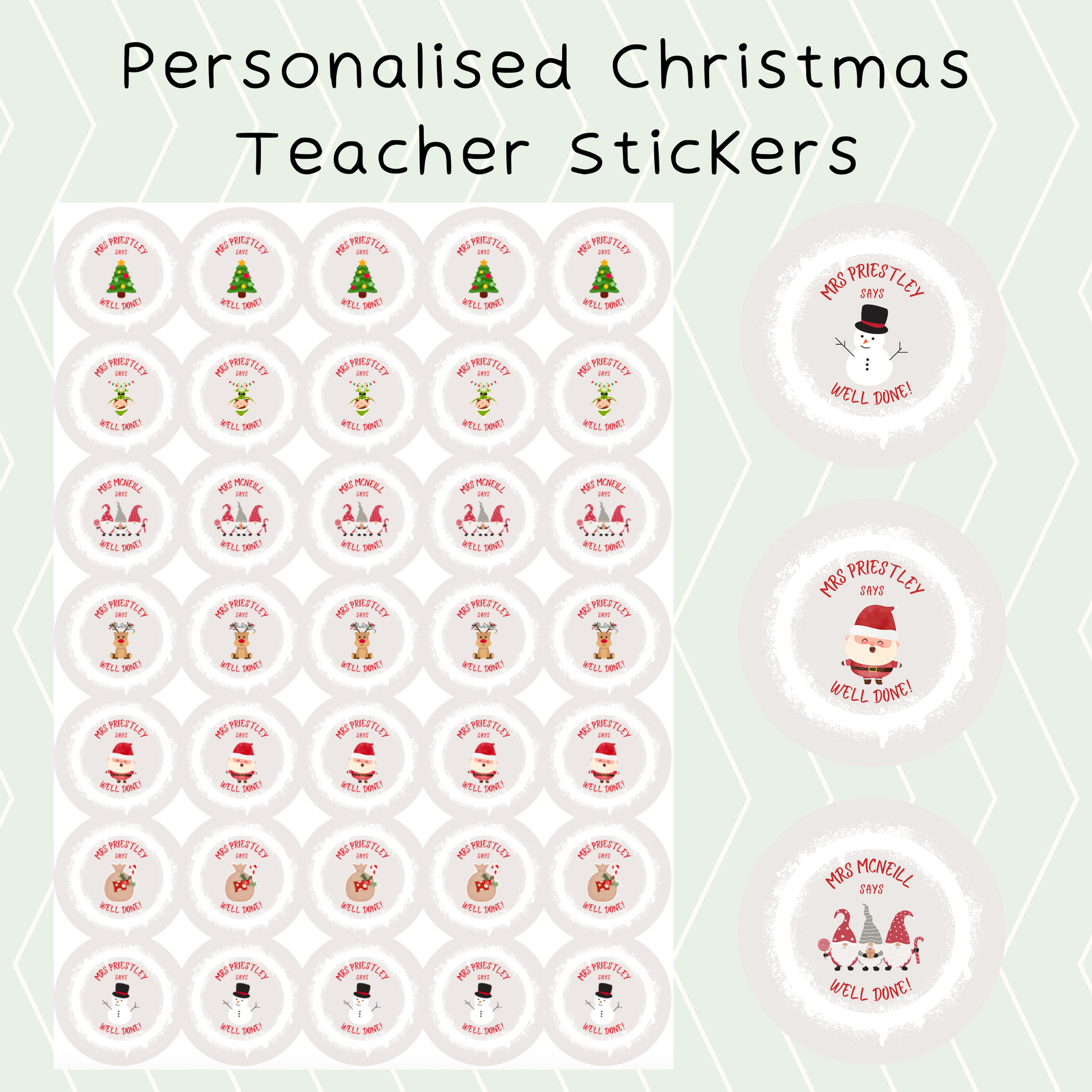 Personalised Christmas Teacher Stickers โ A4 Sheet ๐