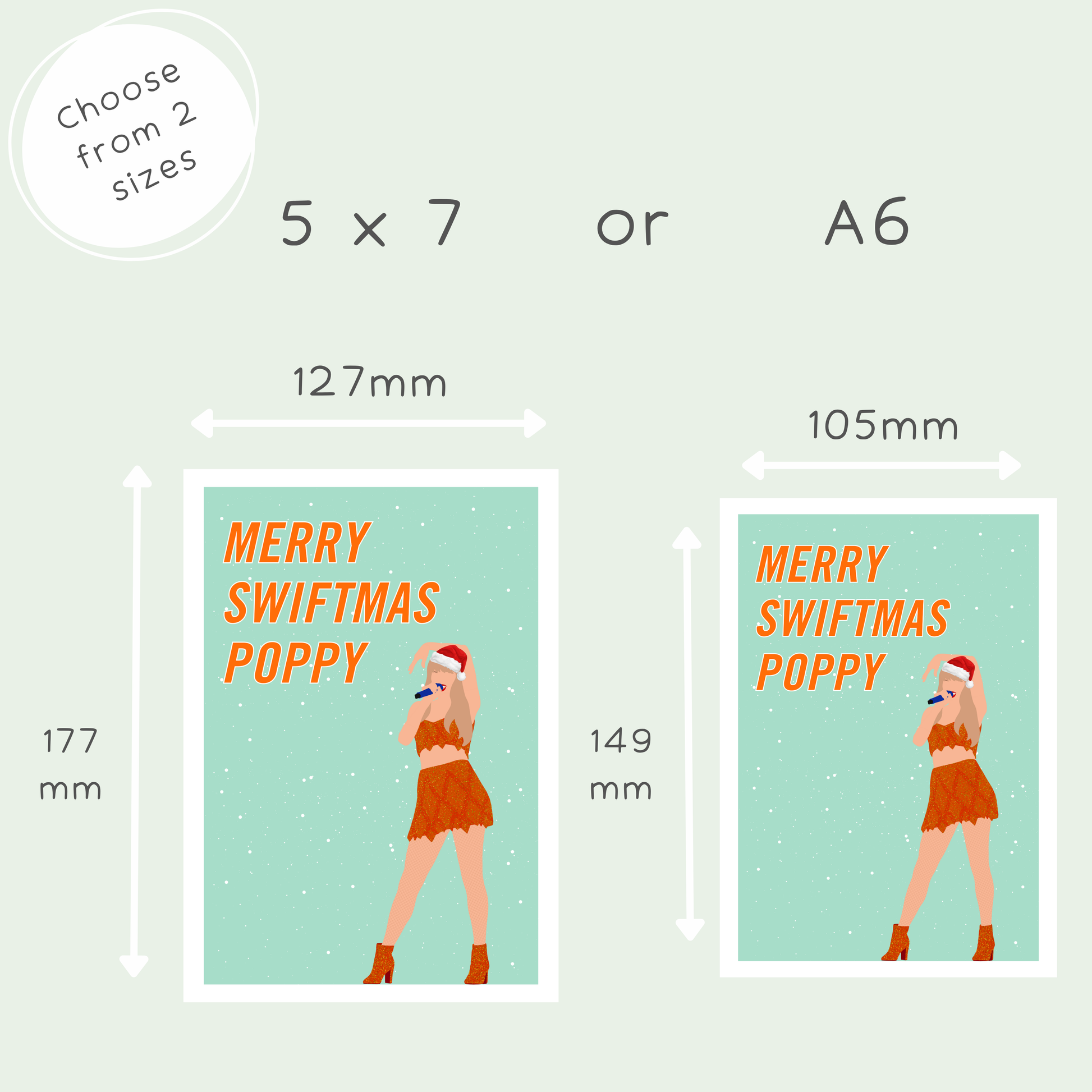 Personalised “Merry Swiftmas” Christmas Card – Taylor Swift Inspired Showgirl Design 🎤